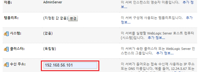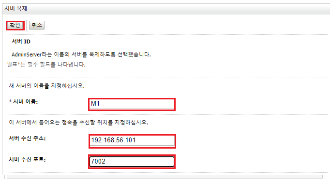 (3-3) 서버 이름: M1, 수신 주소: 192.168.56.101, 수신 포트: 7002 입력 후 [확인] 클릭