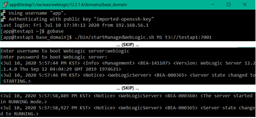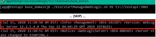 cmd> ./bin/startManagedWebLogic.sh M1 t3://testap1:7001 |
