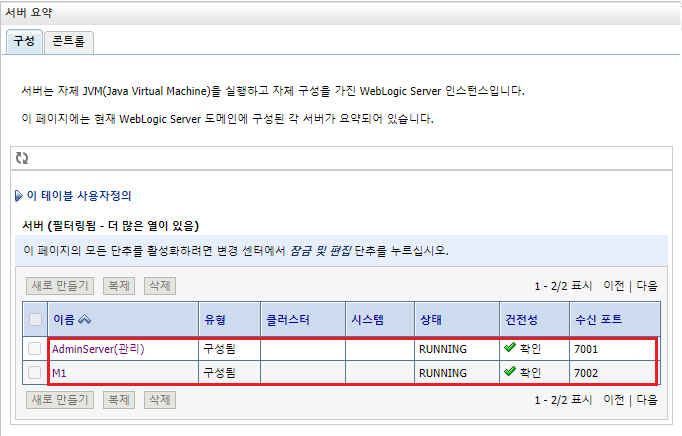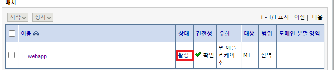6) Admin Console에서 [환경] – [서버]에서 서버 기동상태 확인