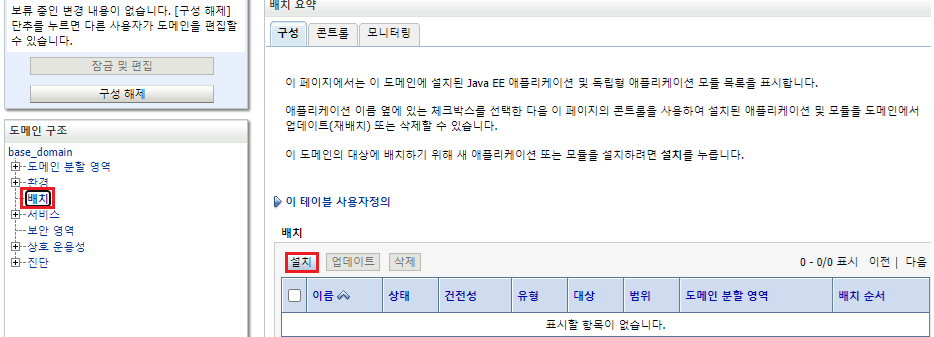 (2-1) Admin Console 접속 – [잠금 및 편집] 클릭 – [배치] 클릭