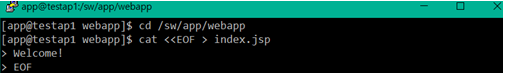 cmd> cat <<EOF > index.jsp Welcome! EOF |