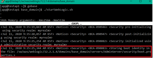 4) 접속 시, boot.properties 내용에 따른 인증 확인 (M1 서버)