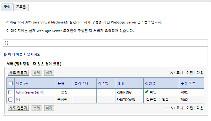 (3-2) [환경] – [서버] – [Admin Server] 체크박스 선택 – [복제] 클릭