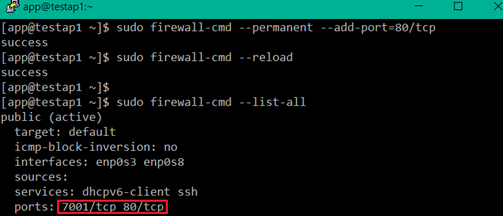 cmd> sudo firewall-cmd --permanent --add-port=80/tcp
