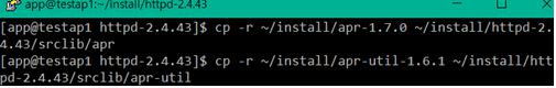 cmd> tar xvfz apr-1.7.0.tar.gz cmd> tar xvfz apr-util-1.6.1.tar.gz cmd> tar xvfz pcre-8.44.tar.gz cmd> tar xvfz openssl-1.1.1g.tar.gz cmd> tar xvfz httpd-2.4.43.tar.gz cmd> sudo mkdir -p /sw/web/apache cmd> cd /sw cmd> sudo chown -R app:app web |