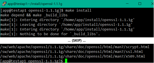 cmd> ./config --prefix=/sw/web/apache/openssl-1.1.1g cmd> make cmd> make install |