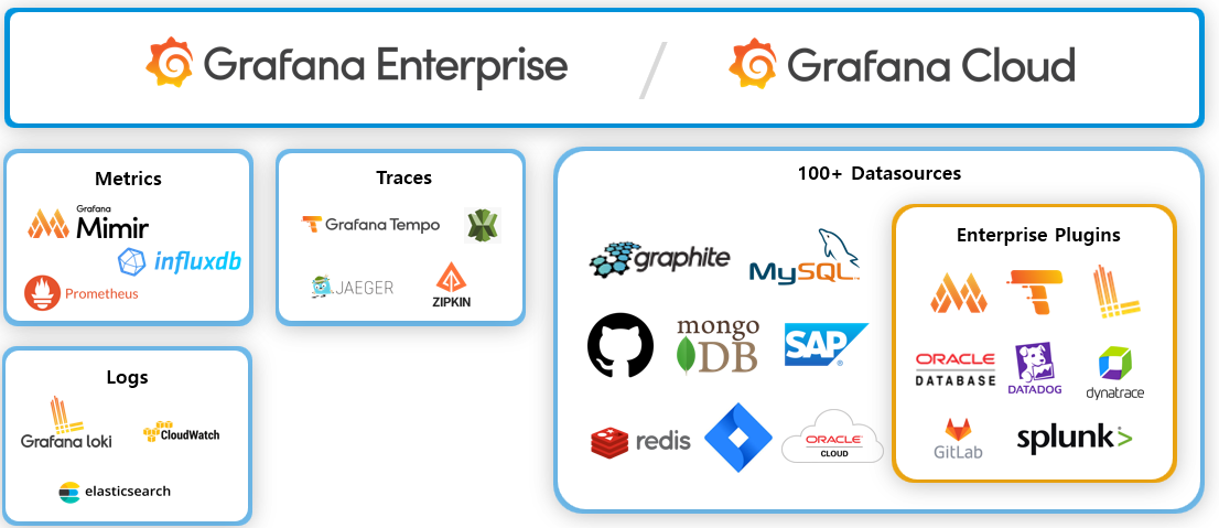 상용 제품인 Grafana Enterprise 그리고 SaaS형태의 Cloud 결합 제품인 Grafana Cloud가 있습니다.