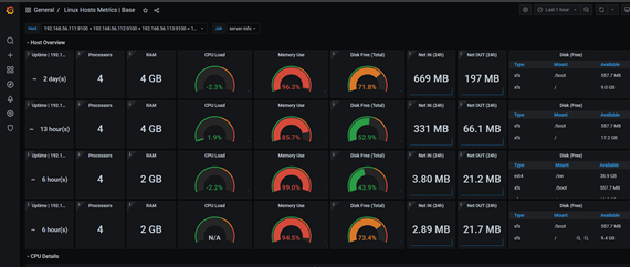 대시보드 링크 - Linux Hosts Metrics | Base | Grafana Labs